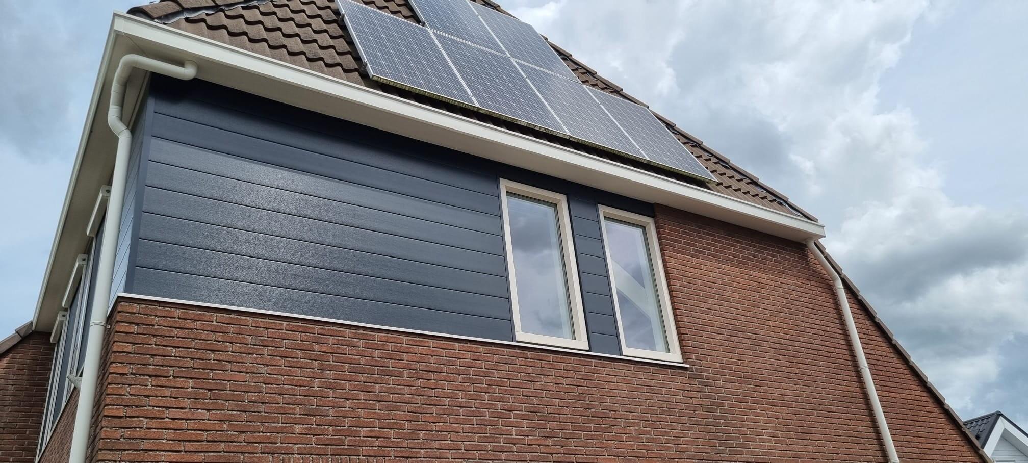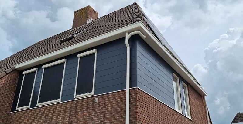 De gevel is vernieuwd met Keralit Sponningdeel 190 in de kleur houtnerf antraciet. Deze duurzame gevelbekleding is: