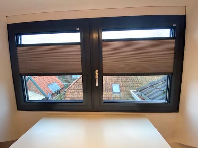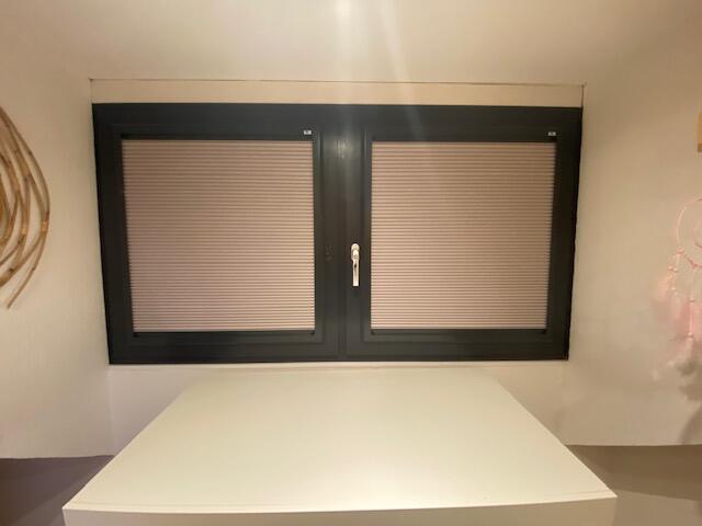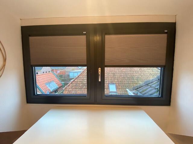 In Siddeburen hebben wij hoogwaardige raamdecoratie geplaatst van KeJe. Voor deze woning is gekozen voor het type Splendid Pliss, uitgevoerd met een verduisterend doek en framekleuren die perfect zijn afgestemd op de antracietkleurige kozijnen.